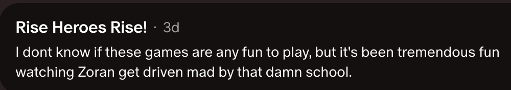 Speaking of Silent Hill, on Patreon Zoran started playing through the original game. And we can’t put it any better than this comment does.